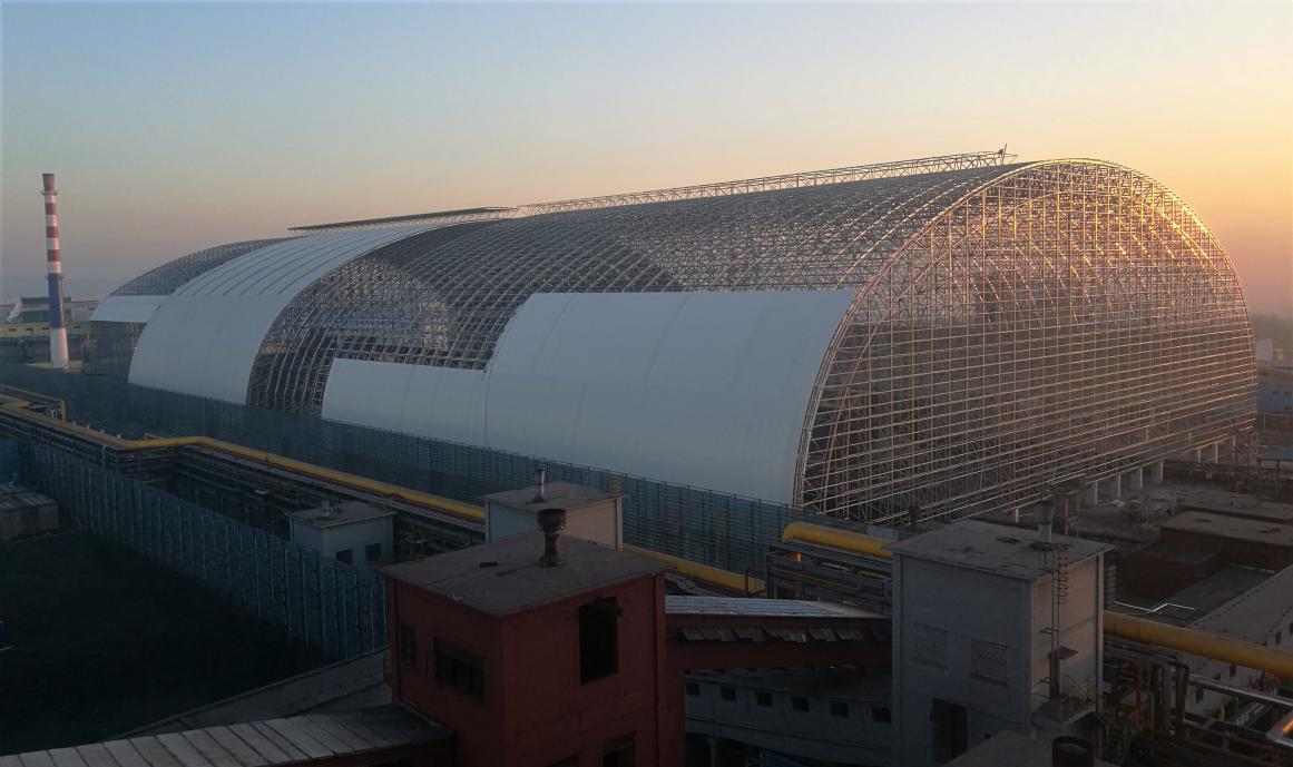 获奖项目划分是:由山西建投建工集团承建的山西焦化煤场全关闭项目钢结构工程,该工程接纳螺栓球节点三心圆柱壳体结构,跨度130米,高度达53米,用钢量3200余吨,施工接纳山墙起步、高空扩拼的要领,是其时省内高度最高、跨度最大的全关闭煤棚工程。