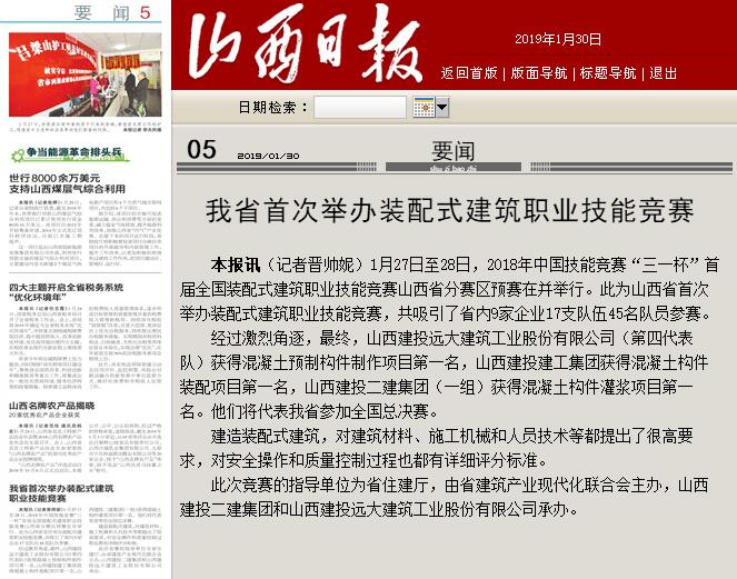 经由角逐,山西建投远大修建工业股份有限公司获得混凝土构件制作项目第一名,山西建投建工程集团获得混凝土构件装配第一名,山西建投二建集团获得混凝土构件灌浆第一名,他们将代表我省加入天下总决赛。