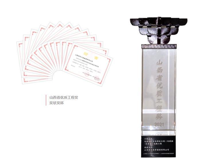 山西省优质工程奖证书、奖杯