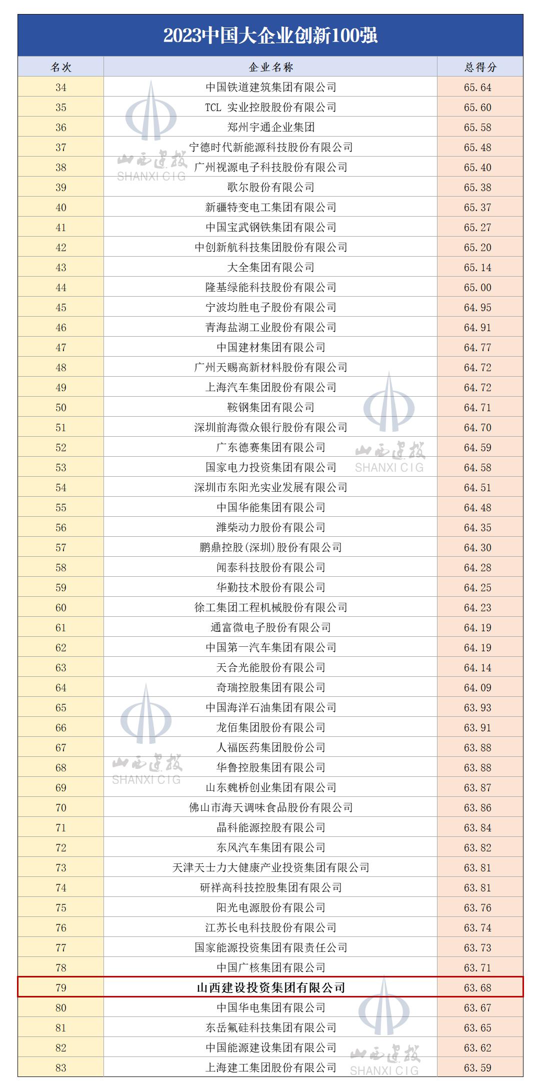 山西建投集团以1360.39亿元的营业收入位列“2023中国企业500强”第193位,较去年提升22位  。同时,以63.68的总得分位列“2023中国大企业立异100强”第79位,较去年提升15位,集团综合实力和科技立异竞争力一连增强,企业焦点竞争力进一步凸显,坚持了高质量生长的优异态势  。
