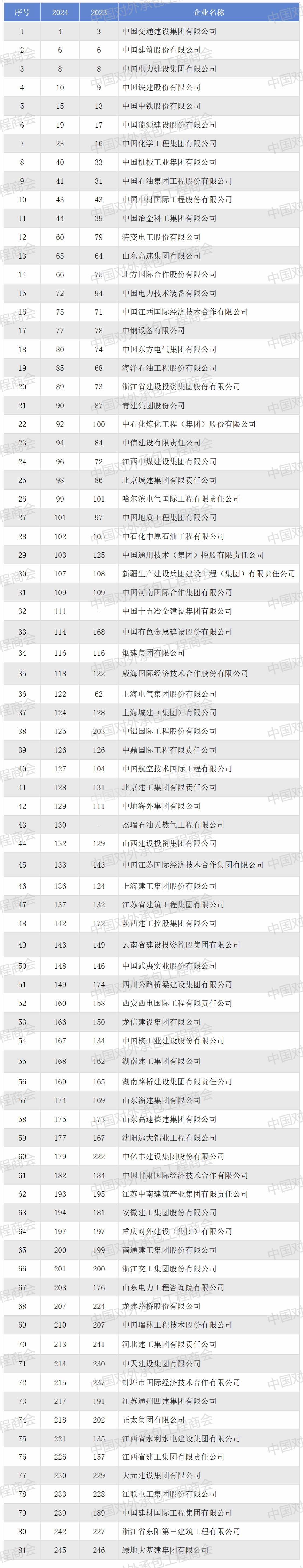 2024年度ENR“全球最大250家国际承包商”上榜中国企业名单