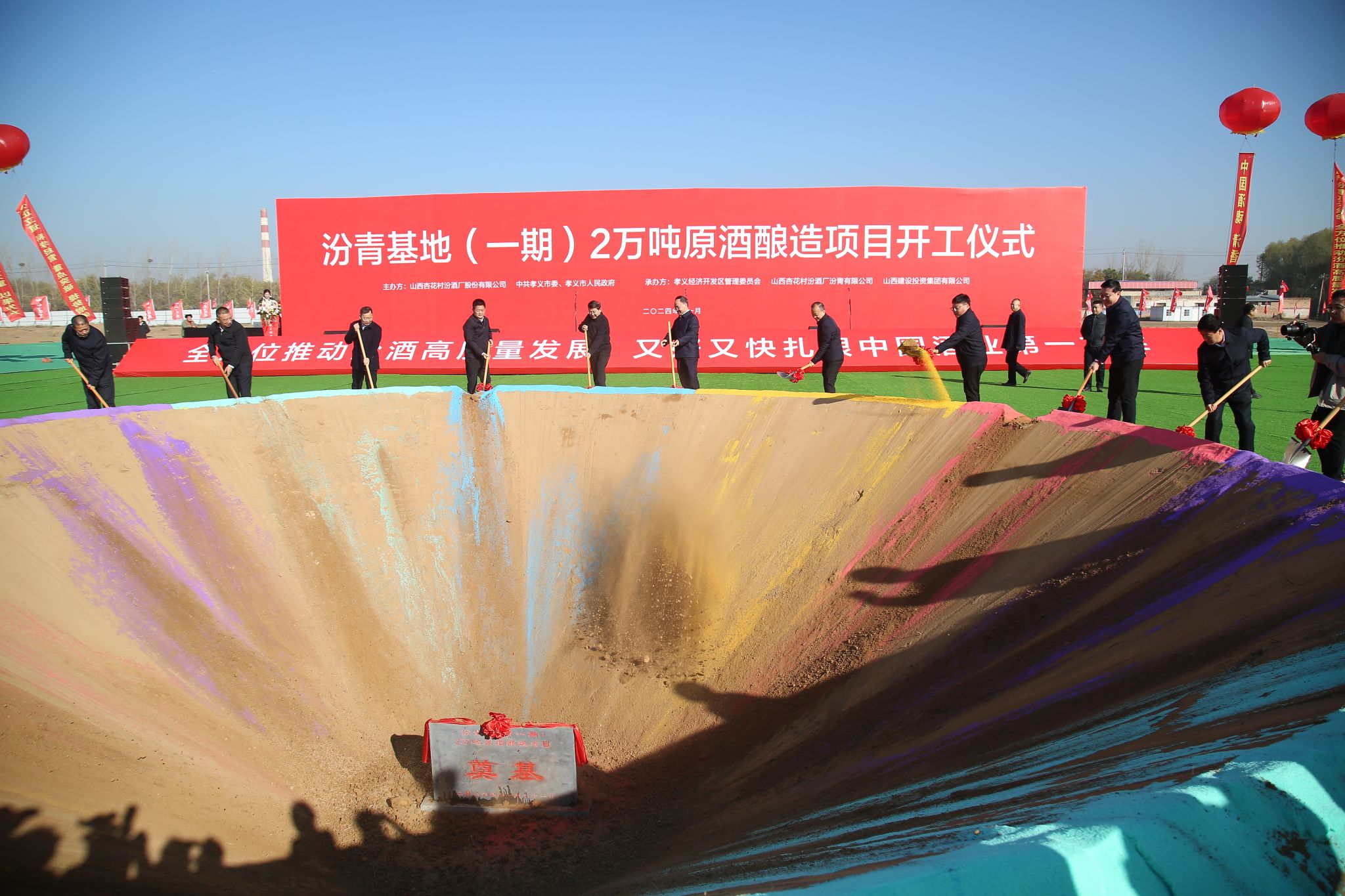 11月21日,山西建投集团承建的汾青基地(一期)2万吨原酒酿造项目举行开工仪式,建投集团党委副书记、副董事长、总司理倪华光出席并讲话,汾酒集团党委书记、董事长袁清茂宣布项目开工,汾酒集团党委专职副书记、副董事长李振寰主持仪式,吕梁市人大常委会副主任、孝义市委书记刘世庆出席仪式。