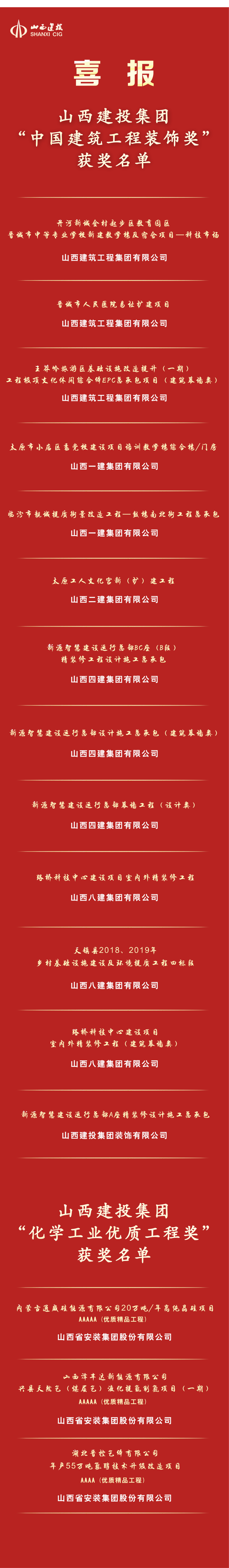 ¿ËÈÕ£¬É½Î÷½¨Í¶¼¯ÍŶà¸öÏîÄ¿ÈÙ»ñÐÐÒµ×î¸ßÉùÓþ¡£