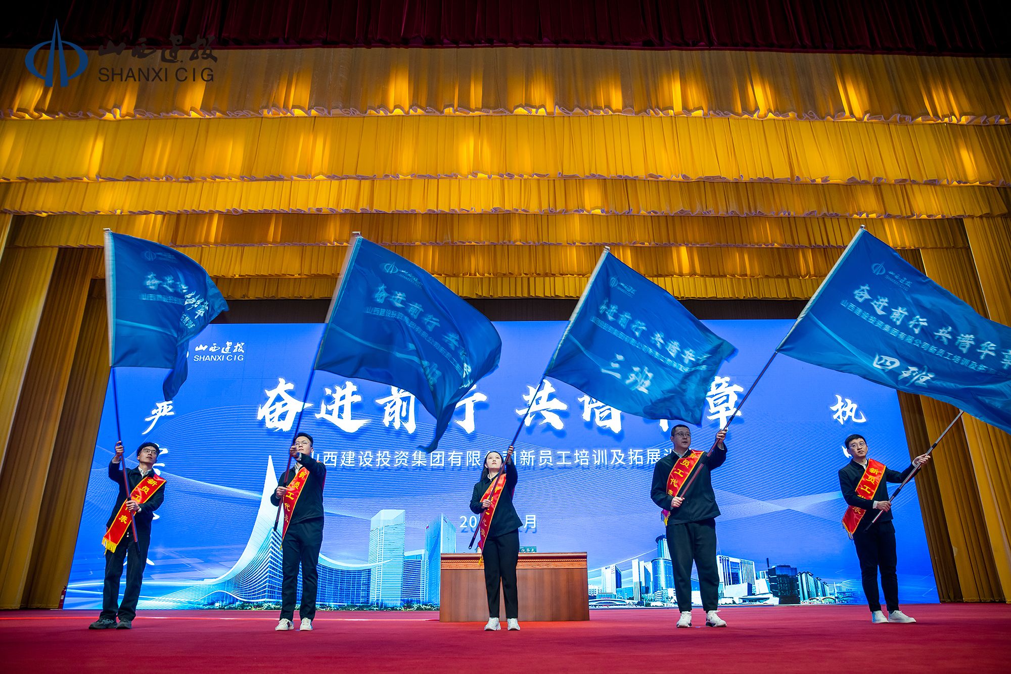 1月14日,山西建投集团2022—2024年新员工培训及拓展训练班在山西潇河国际聚会中心开班,党委书记、董事长倪华光出席开班仪式并分享交流,党委委员、副总司理卫炳章主持开班仪式。