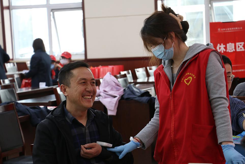在采血区,通过血液检测的同事们卷起袖口,坐在采血椅上,献出自己的青春热血。其中,不乏加入过一再献血运动的同事,但他们仍为自己的行动能给需要的人提供资助、拯救更多的生命于危难而感应无比自豪。“虽然是第一次献血,可是心田更多的是激动难捺。”第一次献血的新员工体现,“之前看到市血液中心的招呼就想着做出一份孝顺,但一直没找到时机,这次起劲地报了名,希望能孝顺自己的实力,为病患者们提供资助。”