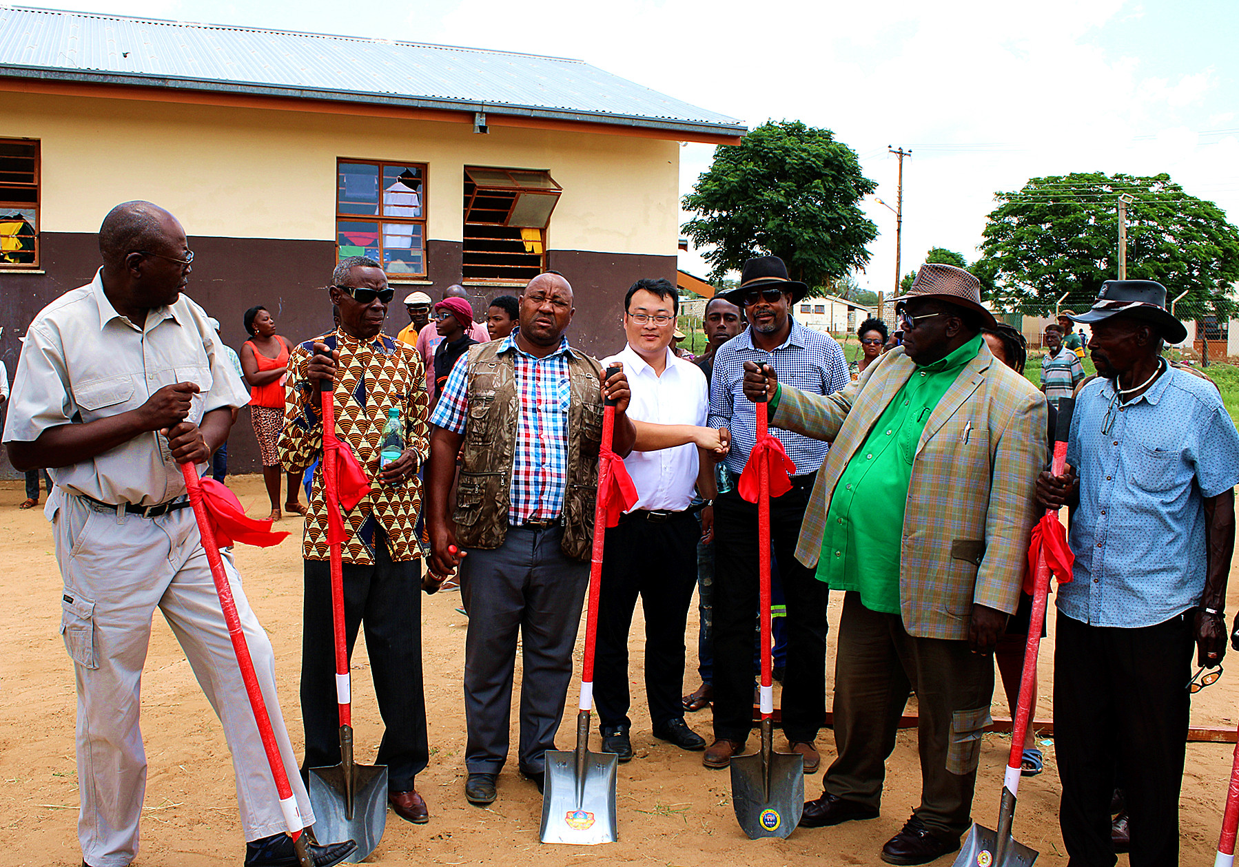纳米比亚教育部官员、区政府向导,非洲开发银行代表、中方代表、校方代表及外地群众约100人配合加入了开工仪式。山西建投纳米比亚分公司司理高勇与外方代表配合为项目涤讪。