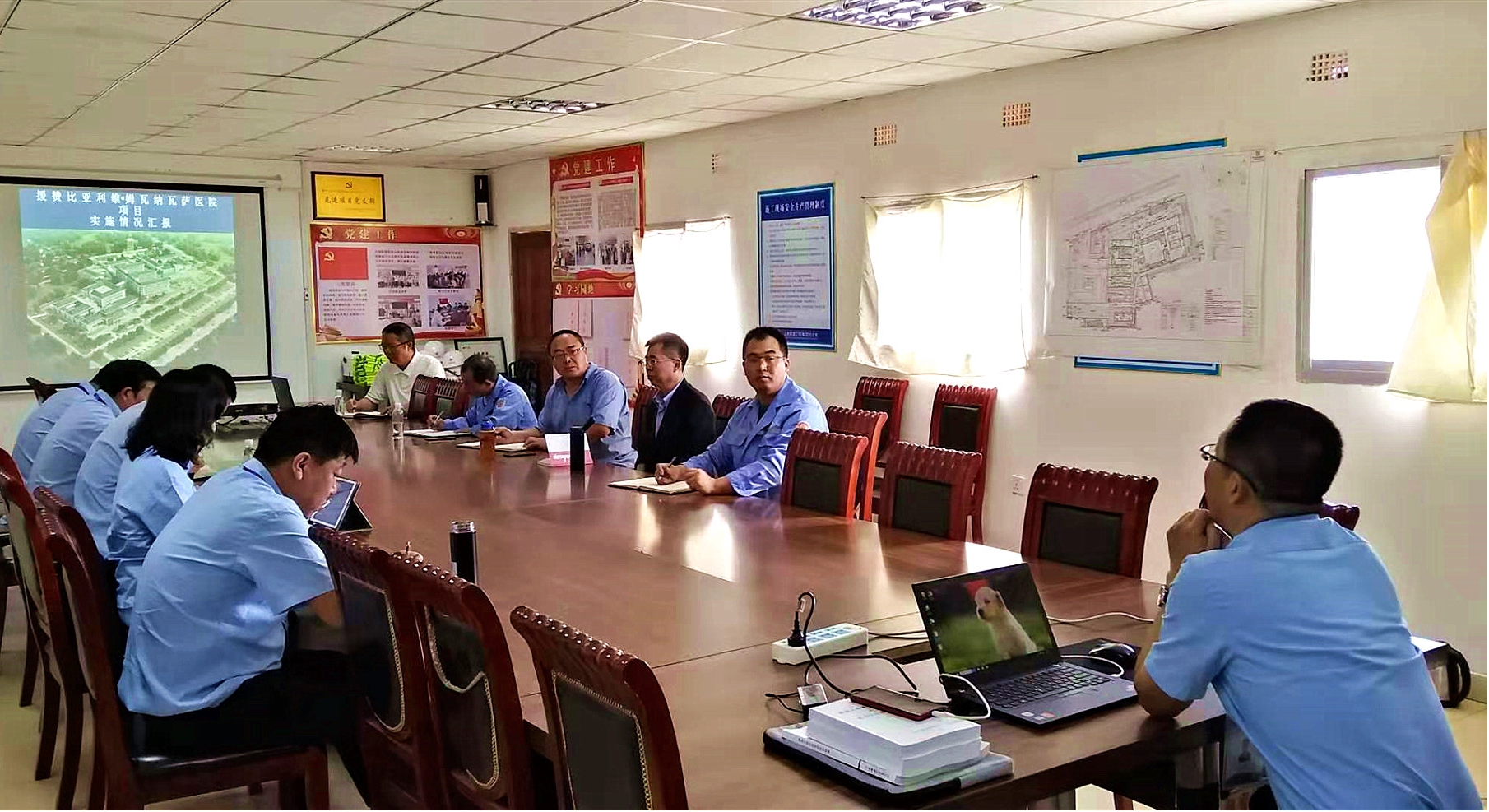 项目中标后,公司党委第一时间建设了赞比亚医院项目党支部,因地制宜地开展党建运动,充分验展党支部战斗堡垒作用,将党建事情与项目治理事情统一安排,形成协力,一直凝聚人心。