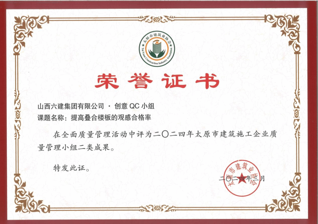 ÆäÖУ¬¡°ºãÁ¦QCС×顪һÖÖ¸ÅÂÔ»ý»ìÄýÍÁÄÚÀäÈ´Ë®¹ÜµÀ·â¶Â×°ÖõÄÑÐÖÆ¡±µÈ5ÏîQCЧ¹û»ñµÃÒ»µÈ½±£»¡°´´ÒâQCС×顪Ìá¸ßµþºÏ°åµÄ¹Û¸Ð¼°¸ñÂÊ¡±µÈ12ÏîQCЧ¹û»ñµÃ¶þµÈ½±£»¡°ÇóʵQCС×顪Ìá¸ßÎÝÃæÅÝÄ»ìÄýÍÁÊ©¹¤ÖÊÁ¿Ò»´ÎÑéÊÕ¼°¸ñÂÊ¡±µÈ7ÏîQCЧ¹û»ñµÃÈýµÈ½±¡£
