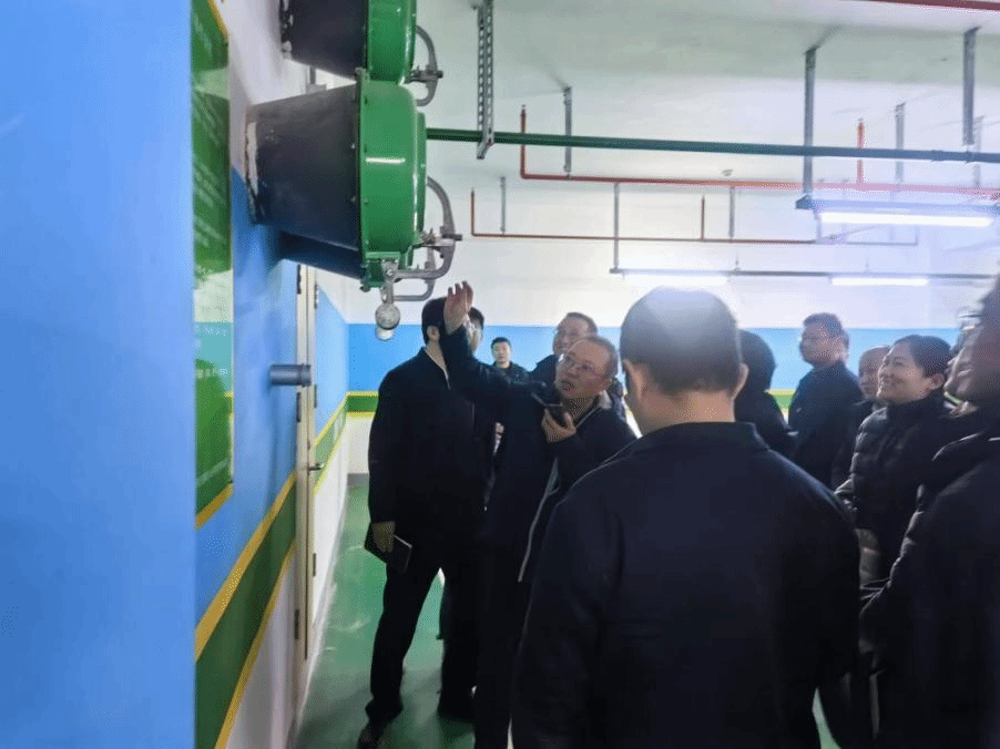 在总部地下车库负二层的人防区域,现场为参训学员先容主要收支口与次要收支口的安排、人防门装置注重事项、滤毒室与除尘室里的装备要点等。