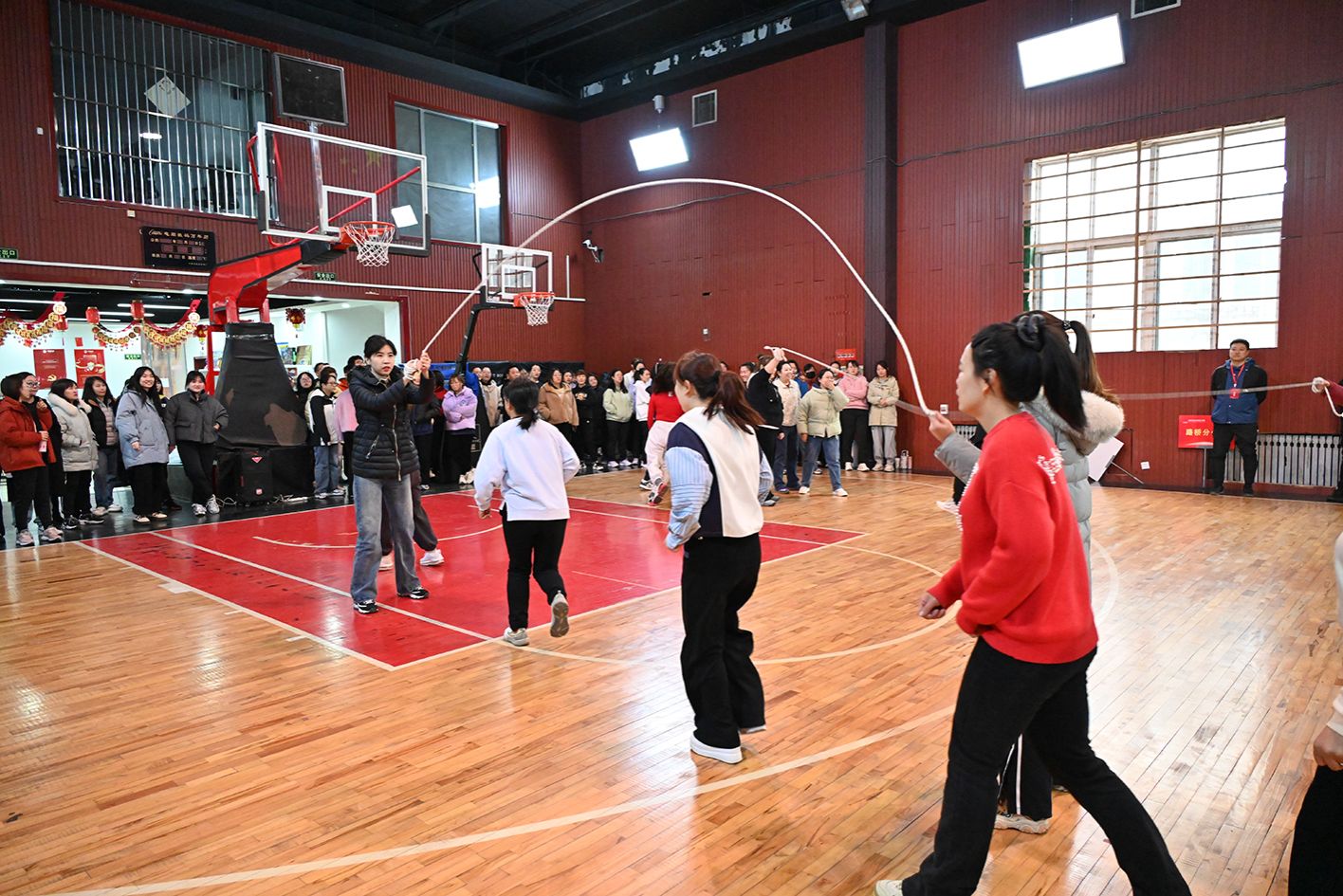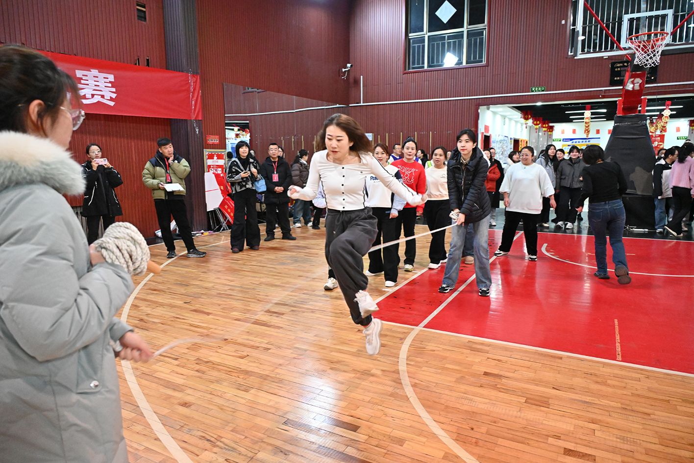 角逐分为小我私家赛和整体赛,既磨练了小我私家手艺,又对团队协作提出较高要求,充分展现了女职工在实力、速率与创意上的多样才华。小我私家赛为30秒单摇跳,选手们身姿轻盈,跳绳在她们手中划出一道道壮丽的弧线。整体赛分为10人长绳“8”字跳和整体跳,角逐中,各队成员默契配合,充分展现了团队协作力。场上场下欢声笑语,相互鼓劲,各人享受着角逐带来的兴趣。
