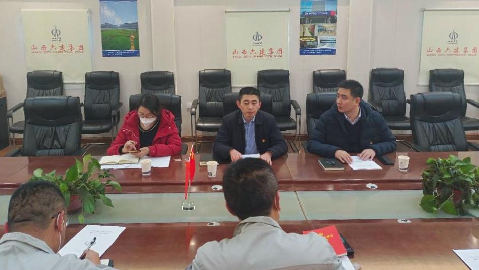1月9日下昼,六建集团总会计师杨丽霞为六分公司党支部宣讲党的二十大精神,分公司党支部全体党员干部员工加入聚会。