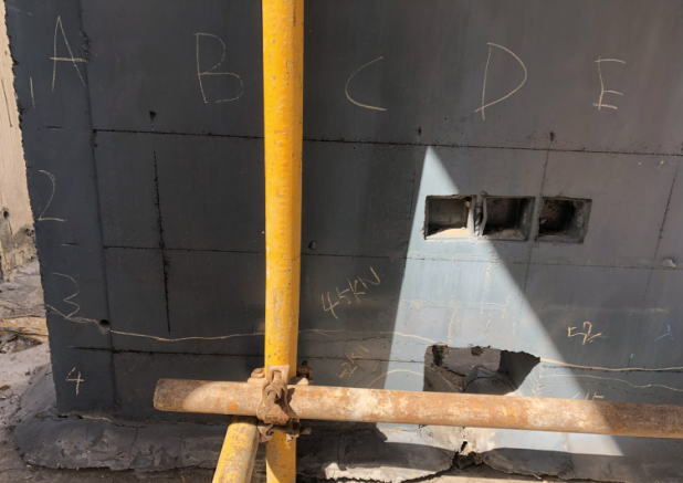 ÔÚ¼ôÁ¦Ç½¹¹¼þµÄÁ½Ã棬¸ßÓÚÂ¥°å25cm´¦µÄλÖÃÉÏ£¬ÉèÖÃ6¸öǧ·Ö±í£¬ÓÃÓڼͼ¼ôÁ¦Ç½¹¹¼þµ×²¿ÔÚʵÑéÀú³ÌÖеÄÎ»ÒÆÊýÖµ¡£
